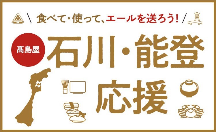 石川・能登を応援する特設サイトを2024年10月22日(火)17時より開設いたします。「食べて・使って応援」「行って・参加して応援」の2つのテーマでご紹介し、各商品はタカシマヤオンラインサイトにてご購入いただけます。