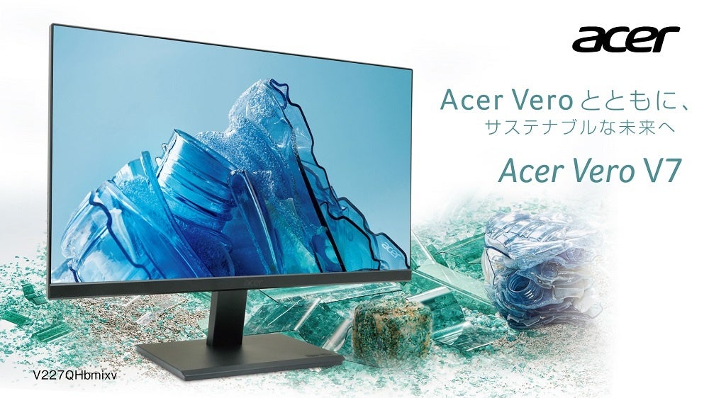 日本エイサー株式会社(本社:東京都新宿区、代表取締役社長:ボブ・セン)は、Acerの統合的なサステナビリティに考慮した取り組みを具現化するサステナブルな製品シリーズAcer Vero(ヴェロ)より、コンパクトな21.5インチモニター「V227QHbmixv」を2023年3月下旬より発売します。製品本体の85%に再生プラスチックのPCR(ポストコンシューマーリサイクル)プラスチック、そして5%にオーシャンバウンドプラスチックと呼ばれる海に流出する可能性の高いプラスチックを使用することで、製品本体90%へのリサイクル素材使用を実現しました。リサイクル素材を製品本体に使用することで、新品のプラスチックであるバージン・プラスチック100%使用時と比較して、二酸化炭素排出量の削減に貢献する新モデルです。製品梱包にもこだわり、梱包のパッケージは100%リサイクル可能です。