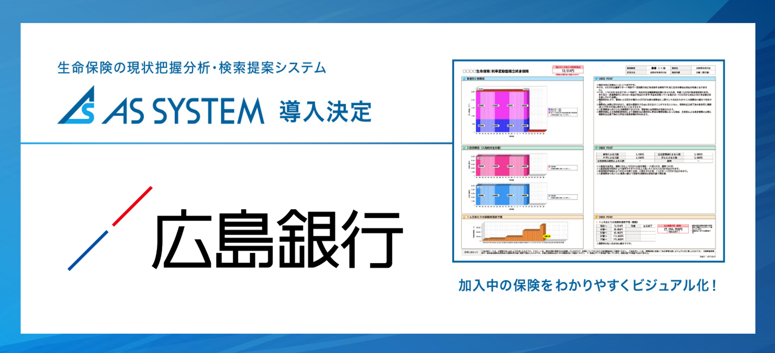 “保険×IT×AI” 生命保険の現状把握分析システム『ASシステム』 広島銀行へ導入が決定