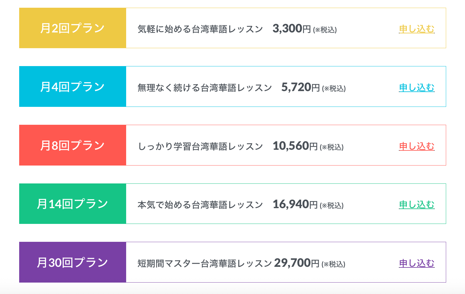 台湾散歩は、月2回プラン〜月30回までの回数別に全5プランのご用意がございます。