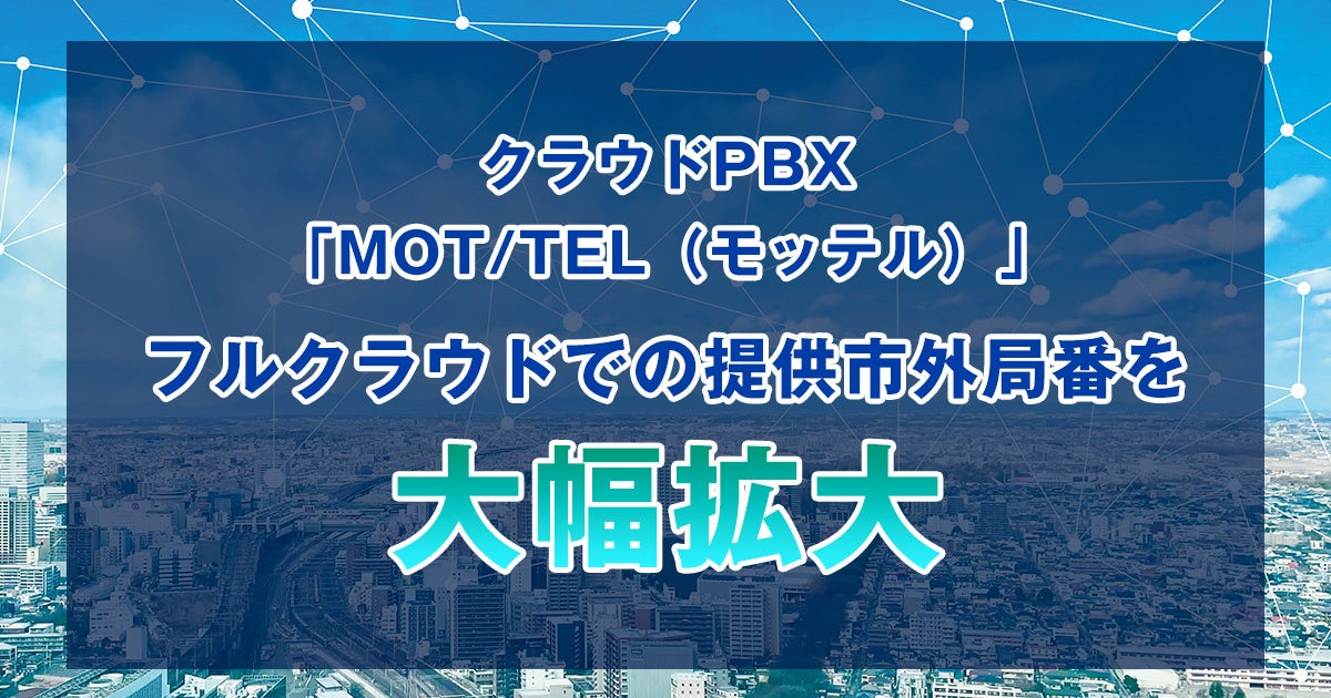 クラウドPBX「MOT/TEL(モッテル)」フルクラウドでの利用可能な市外局番を大幅に増加