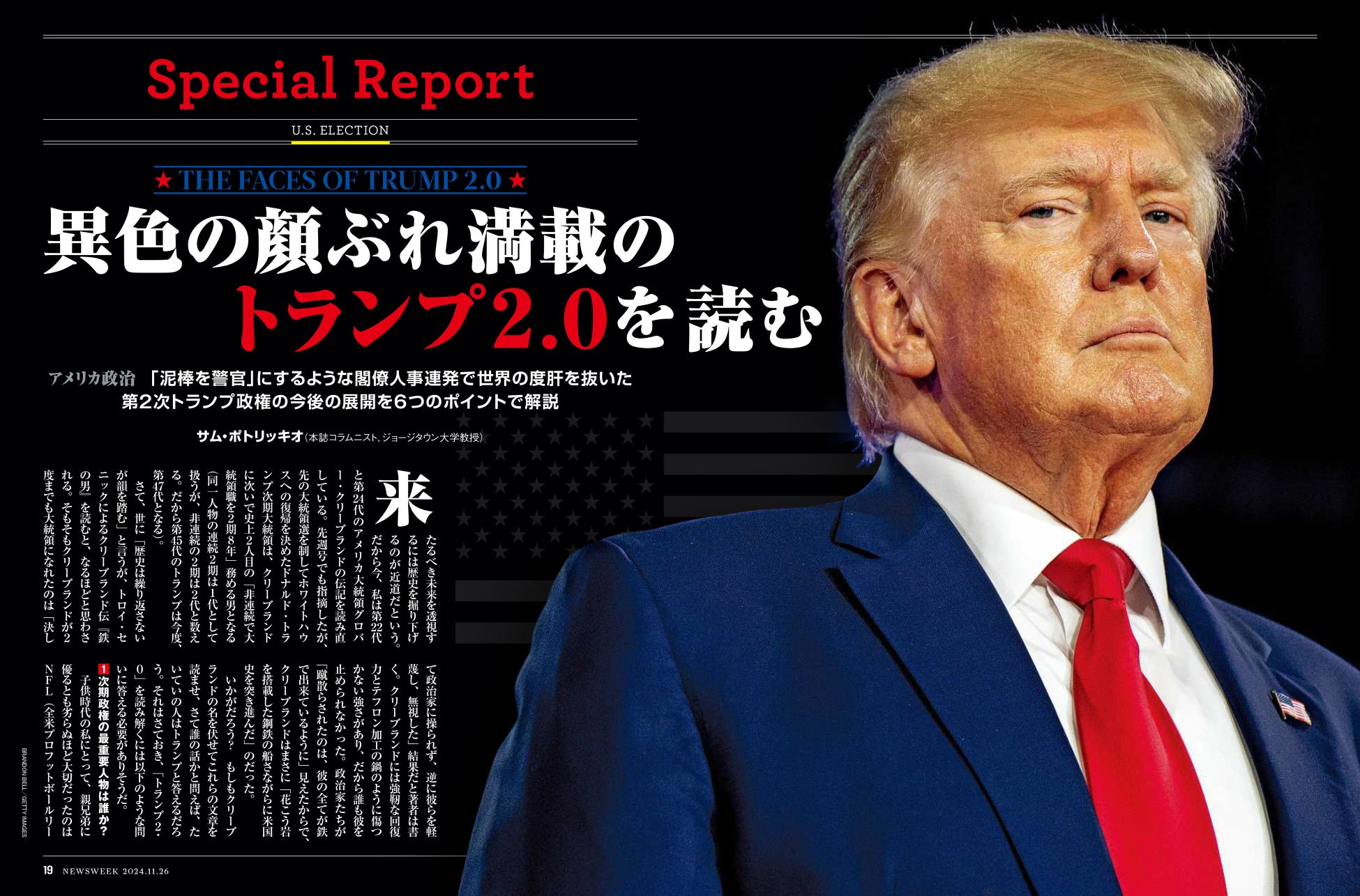 電光石火の閣僚人事で世界に先制パンチ!第2次トランプ政権で次に起きることを超解説する『トランプ2.0』ニューズウィーク日本版11/26号は好評発売中!