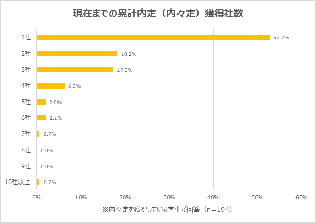 (2) 内々定を獲得している学生のうち47.3%が「2社以上」の内々定を獲得したと回答