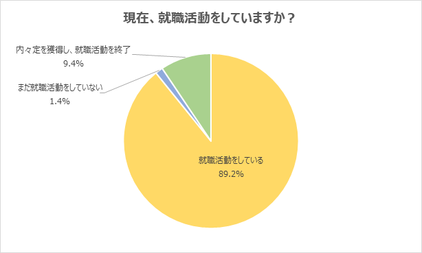 (3) 現在の就職活動率は約9割。9.4%は「就職活動を終了」と回答