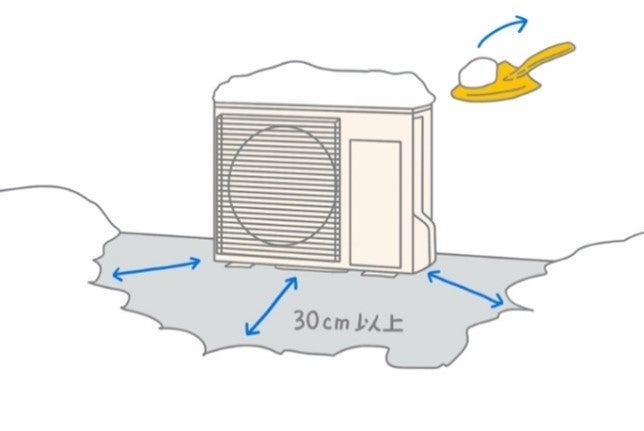 室外機の周りに雪が積もらないように注意しましょう