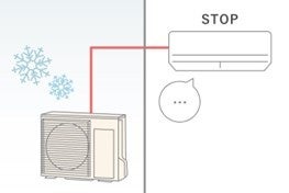 霜取り運転は、暖房が室外機の霜を溶かすのに使われている状態です。霜取り運転中は部屋を暖めることができないため、暖房運転を一時的に停止。霜取り運転が終わると、自動的に暖房運転を再開します。