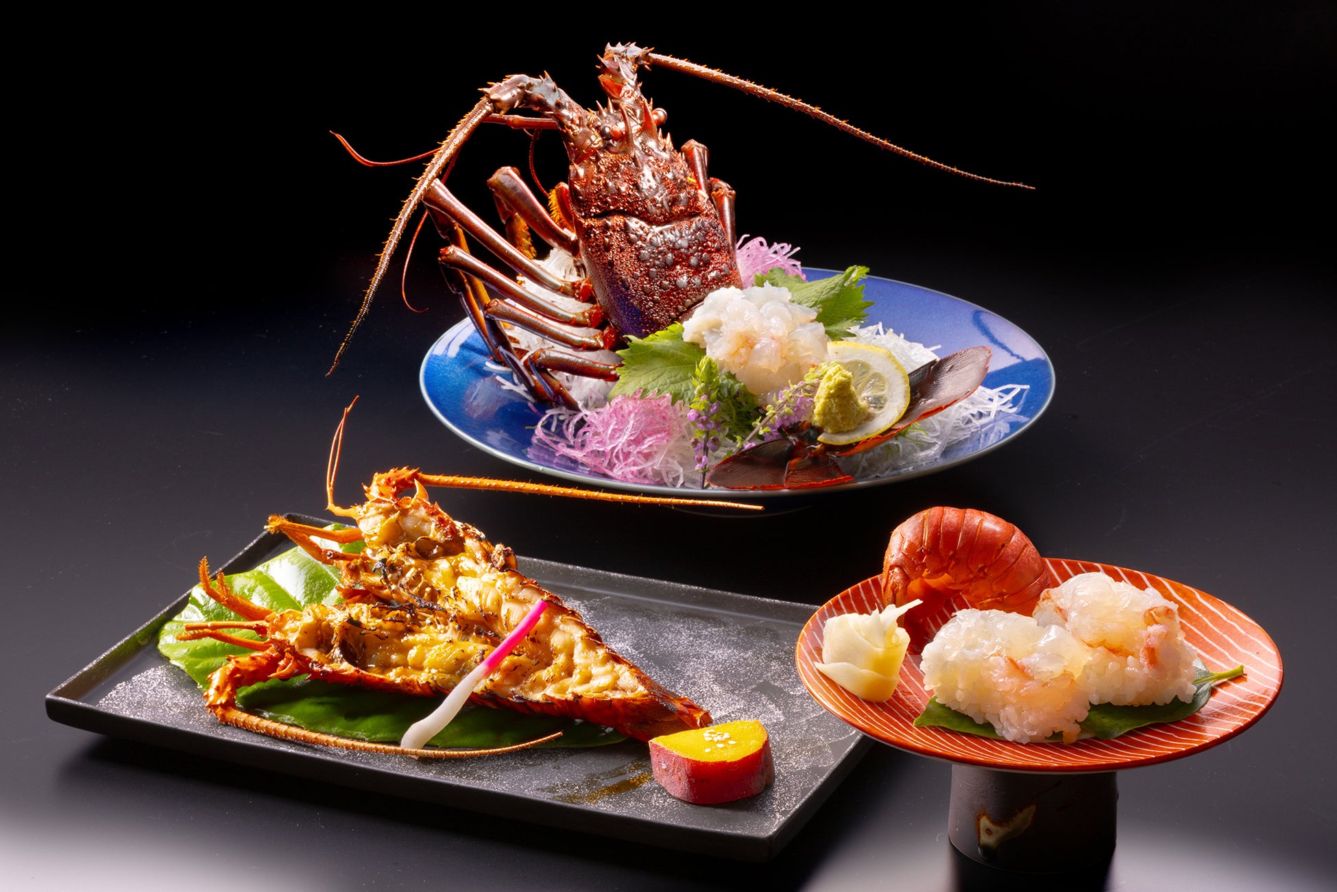 ①活伊勢海老の姿造り約400g付きの「極 伊勢海老会席」