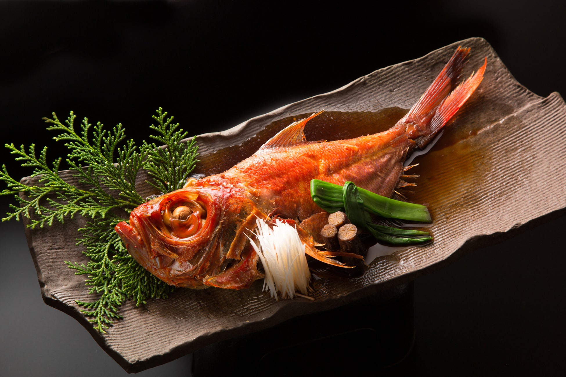 漁獲量日本一の金目鯛、伊勢海老、明日葉など、伊豆山海の幸は、お造りや焼物、煮物のほか、季節の旬を味わえる和会席でお召し上がりください。