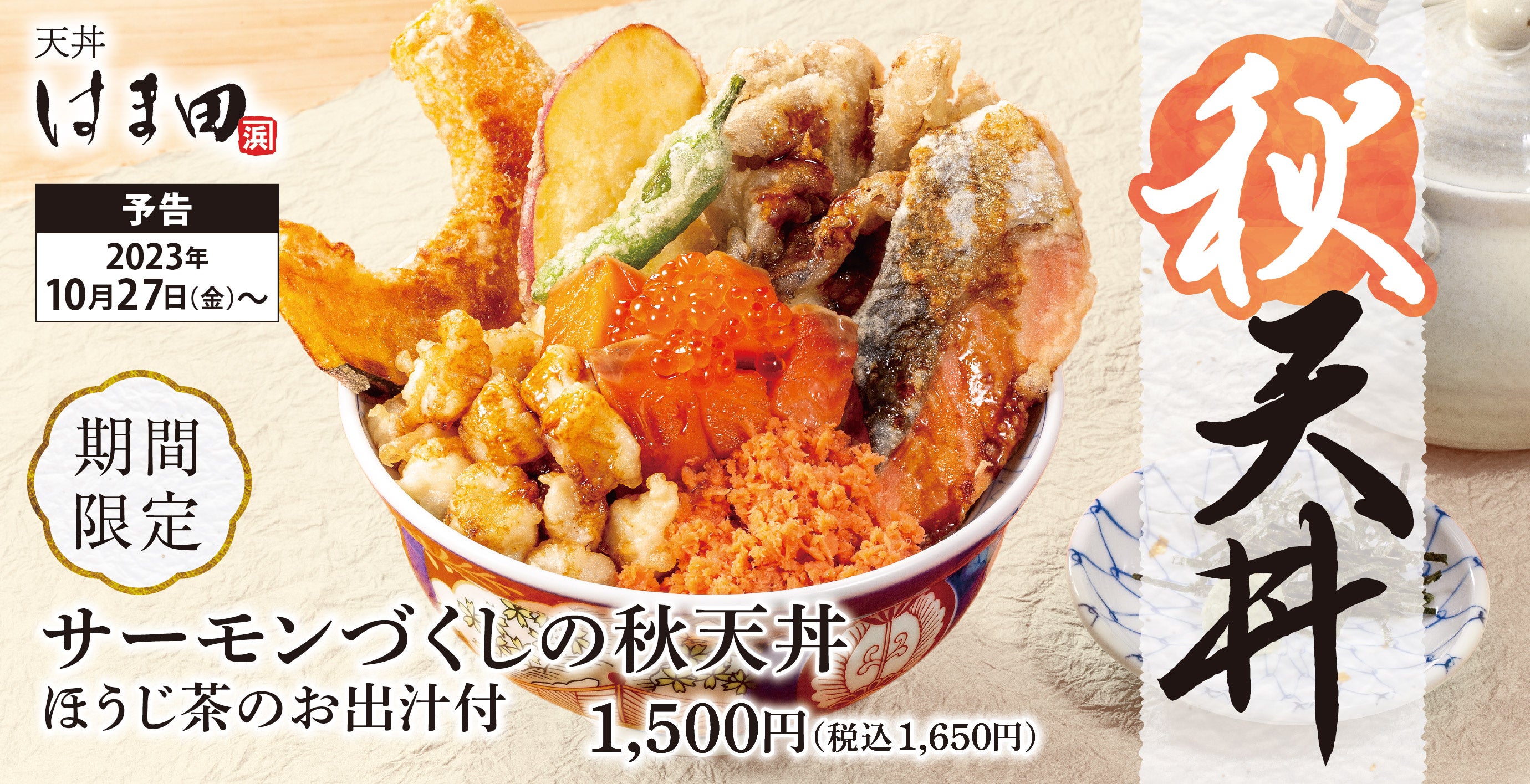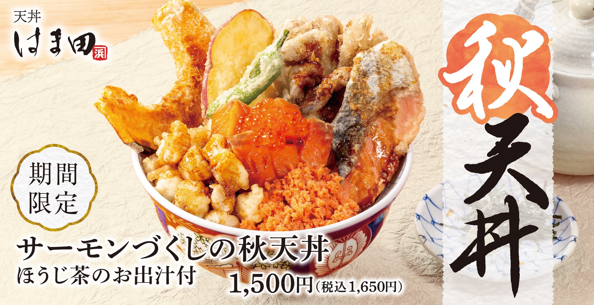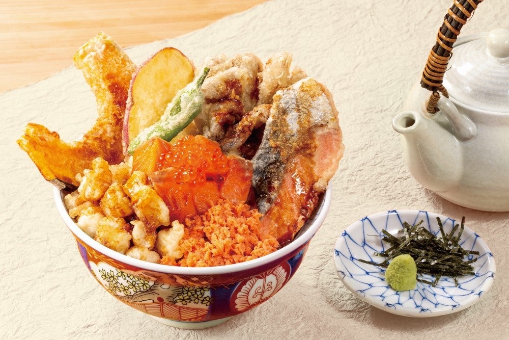 「こんなお店があったらいいな」を身近に。をコンセプトに、6店舗を展開する「天丼はま田」から、秋の新作「サーモンづくしの秋天丼」を2023年10月27日(金)より期間限定で販売を開始いたします。