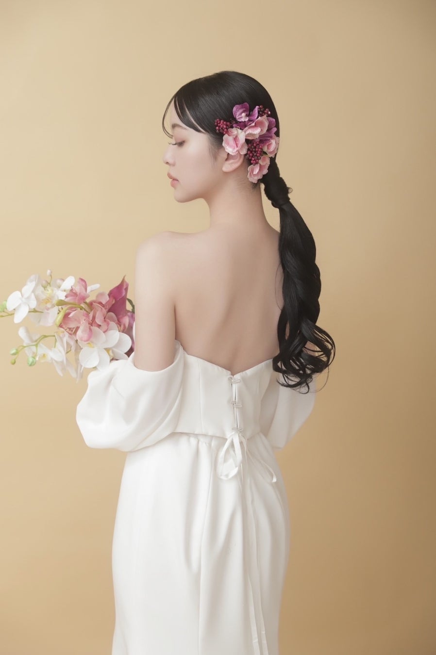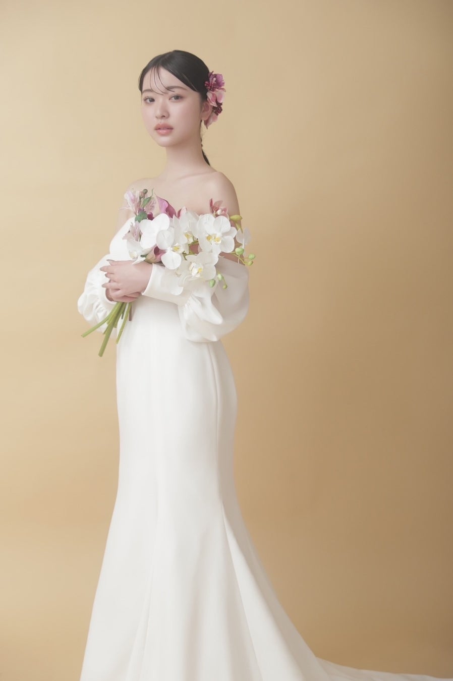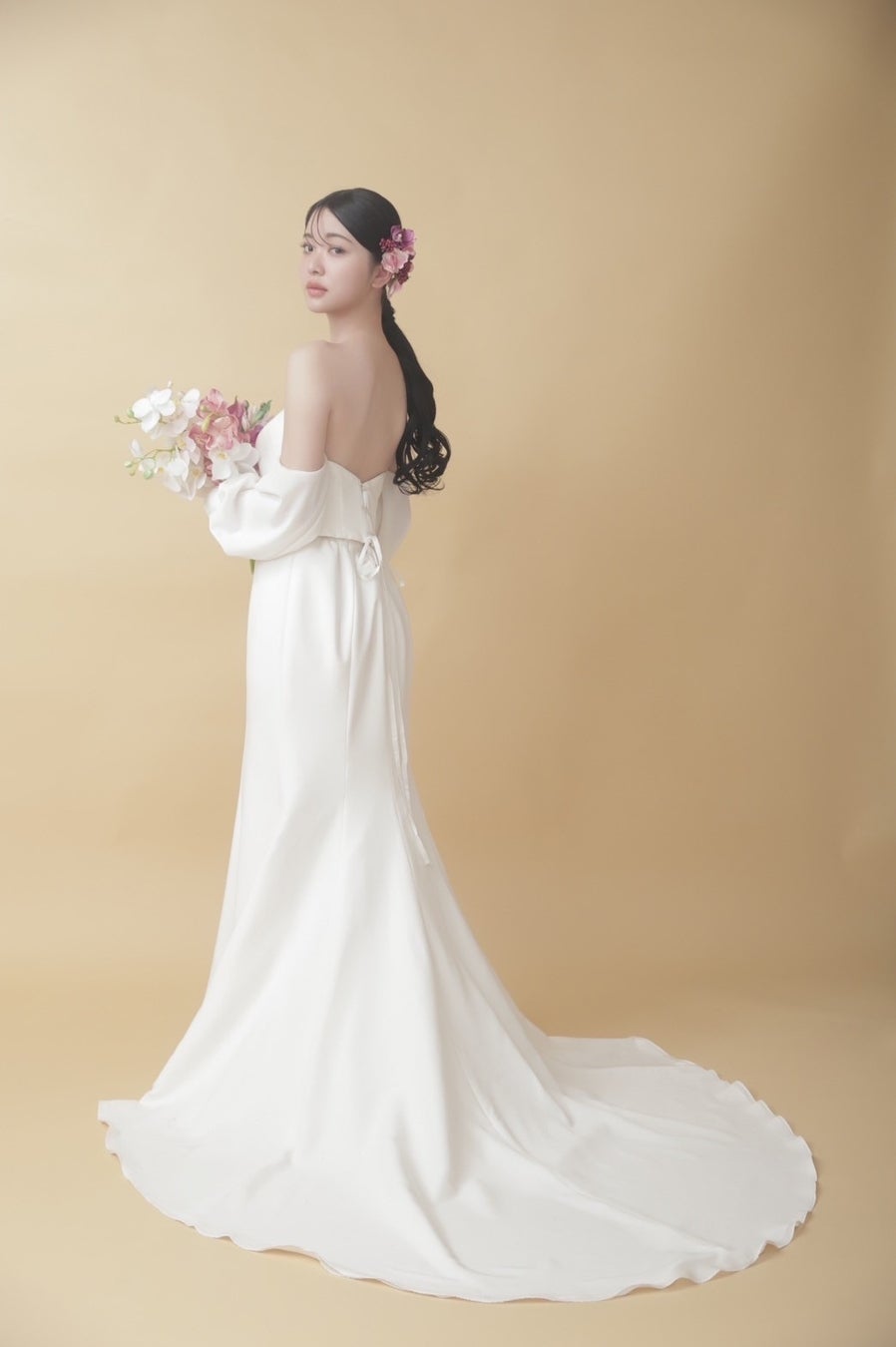 オフショルダーの有無を選ぶことができるので、お好みのスタイルで写真を残せるのもポイント。