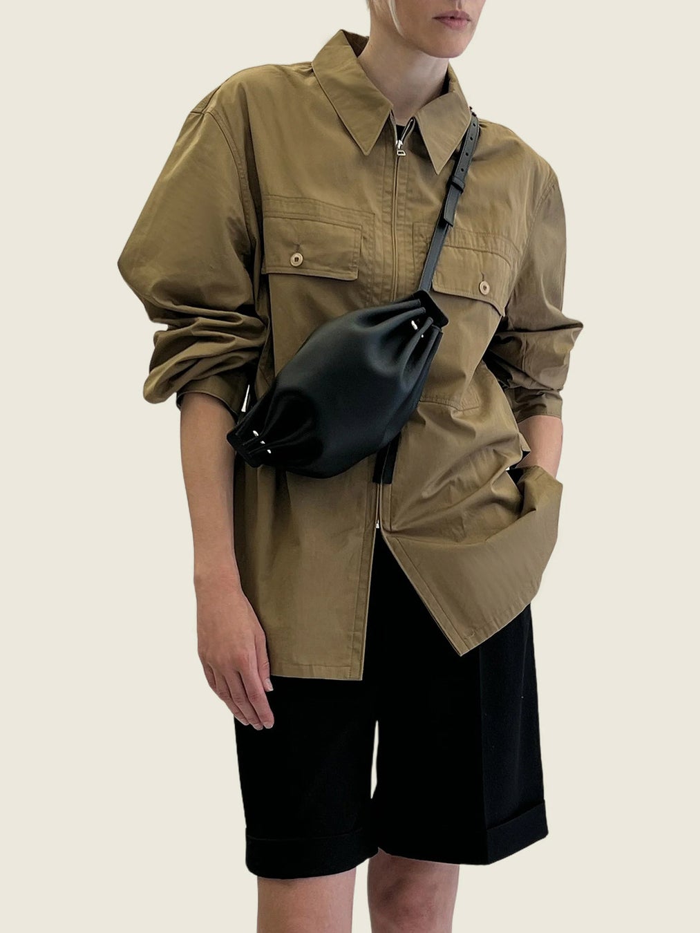静かな存在感を放つ、構築的なレザーデザイン