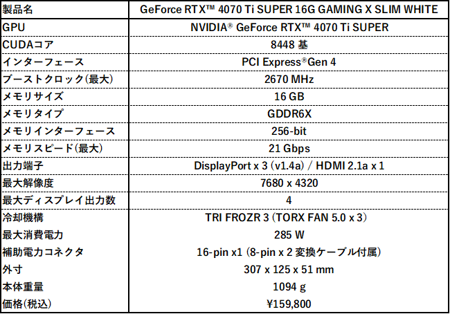 https://jp.msi.com/Graphics-Card/GeForce-RTX-4070-Ti-SUPER-16G-GAMING-X-SLIM-WHITE