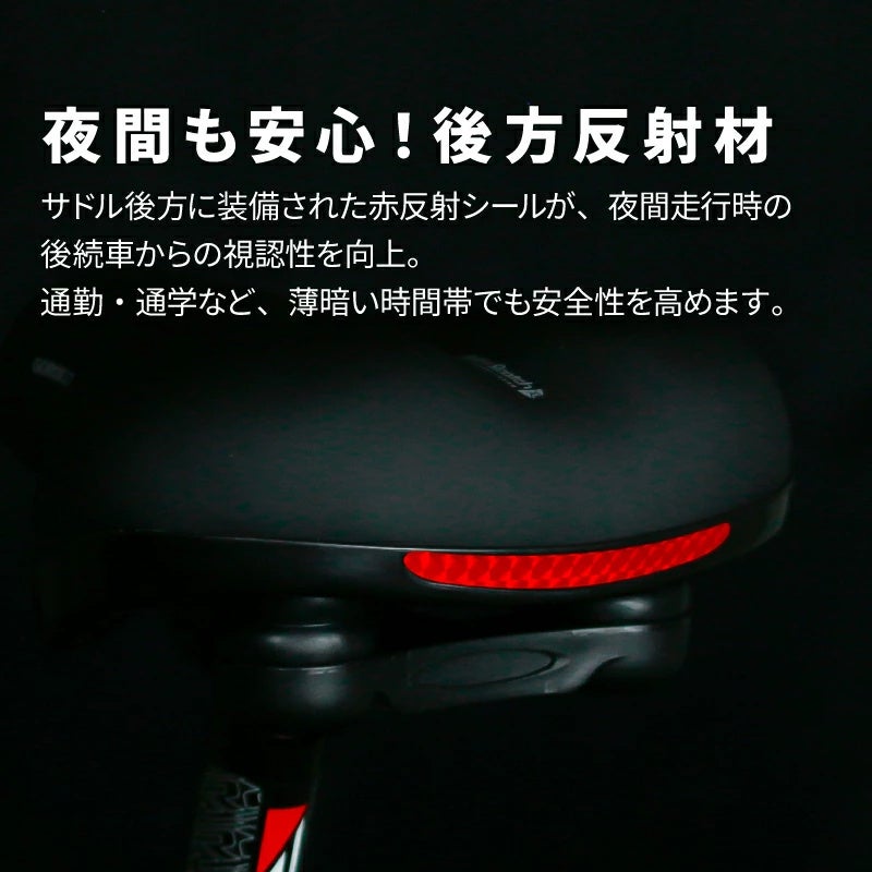 サドル後方に装備された赤反射シールが、夜間走行時の後続車からの視認性を向上し、