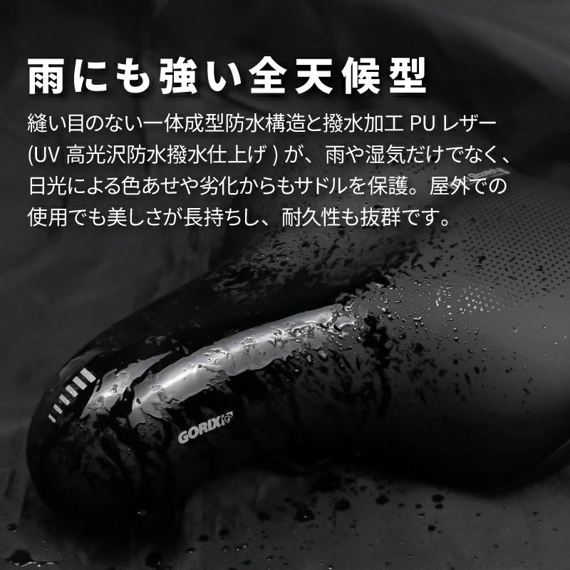 高光沢の撥水・UV耐候加工も施され、雨の日や屋外保管でもサドルの美しさと耐久性を