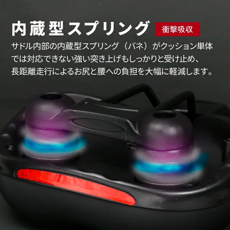 さらに内蔵型スプリングが振動を吸収する二重構造により、長時間乗っても坐骨や腰への負担を