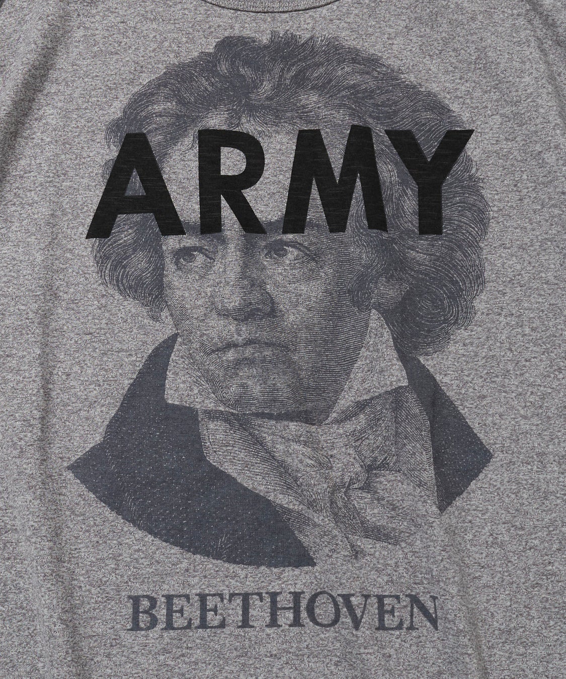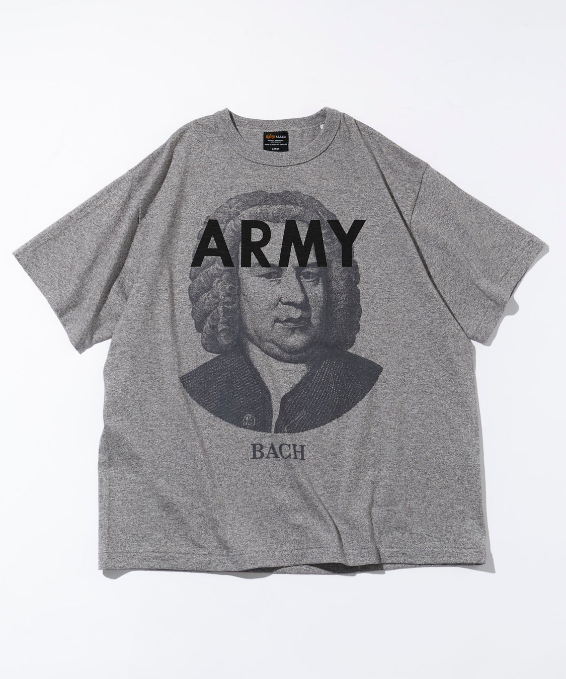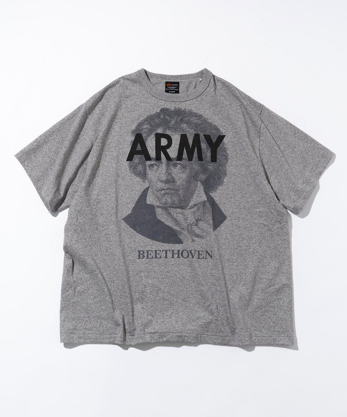 クラシック音楽界を代表する偉人「ベートーヴェン」「バッハ」の肖像を大胆にフロントへ配し、「ALPHA INDUSTRIES」を象徴する“ARMY”のタイポグラフィを掛け合わせた、ユニークかつインパクトのあるデザインが特徴。