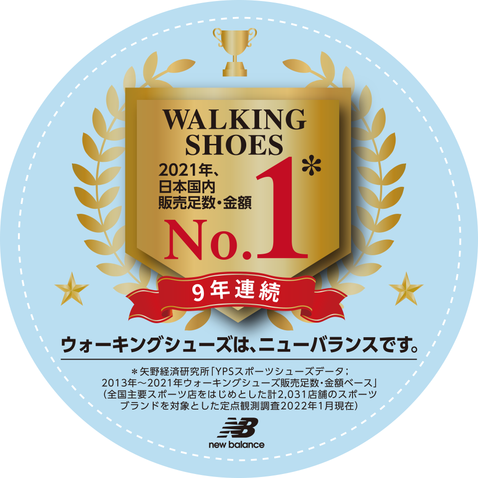 ニューバランスは、機能性の追求はもちろん、時代の求めるデザインを融合しウォーキングシューズを開発しています。2013年から9年連続で日本国内ウォーキングシューズ販売足数・金額No.1(※)を達成しています。