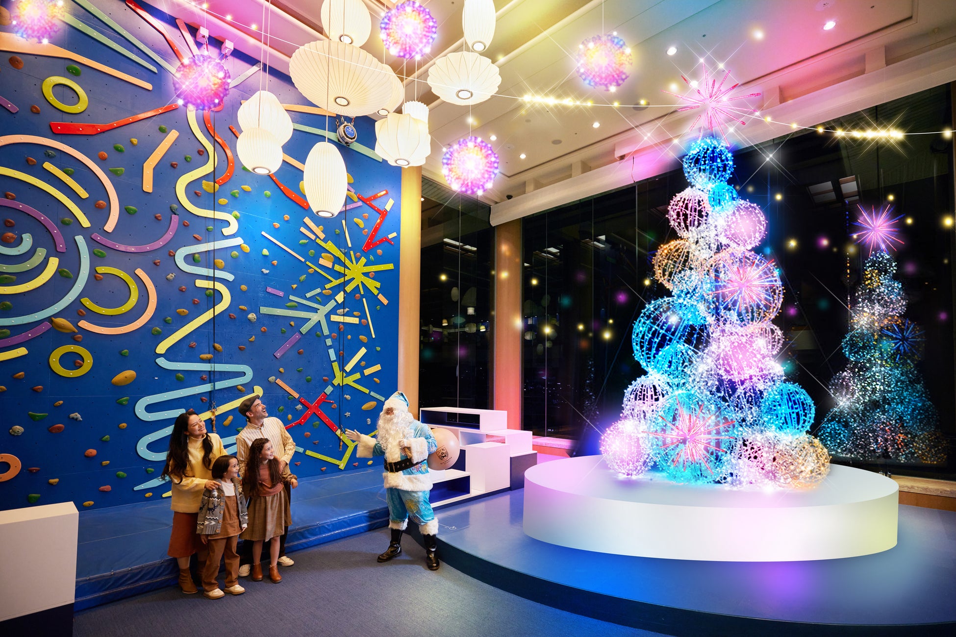 熱海の海と街を一望できる吹き抜け空間「アクティビティラウンジ」に、パステルカラーのクリスマスツリーが登場します。クリスマスツリーのカラーは、熱海海上花火大会を開催当初より手掛ける打ち上げ花火製造会社「イケブン」が監修。1日1回開催する点灯式では、イケブンの代表的なカラーである水色にツリーが点灯します。また、水色の衣装を着たサンタからプレゼントをもらったり、ツリーの前で一緒に写真を撮ったりすることで、クリスマスの思い出をつくることができます。