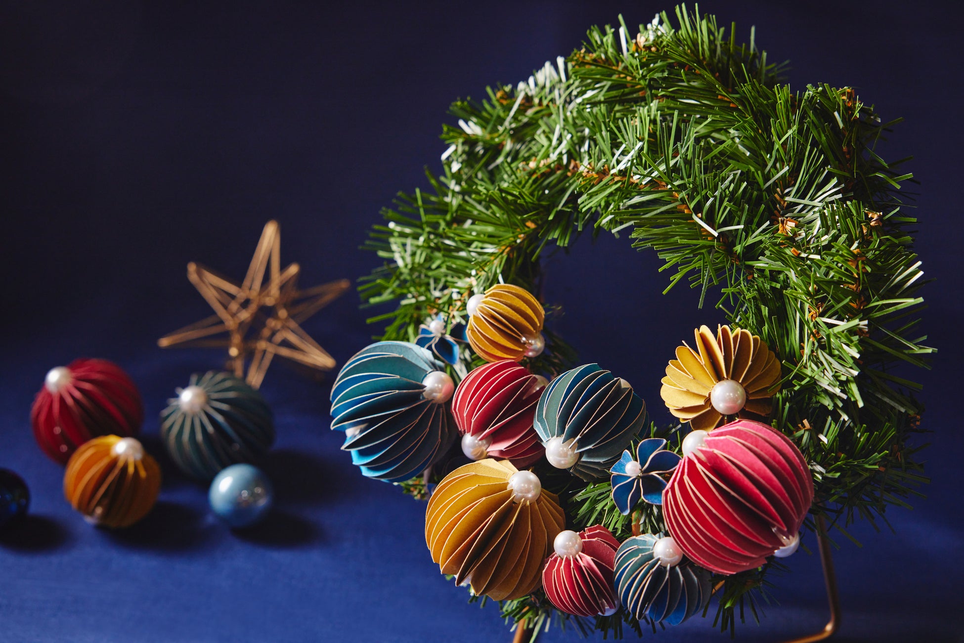 花火玉に実際に使われているクラフト紙の廃材を使用した「花火玉リース作り」を体験できます。花火玉や花火が夜空に花開いた様子をイメージした飾りを作り、思い思いの場所につければ、クリスマスリースの完成です。作ったリースを持ち帰って飾ると、リゾナーレ熱海で過ごしたクリスマスを思い出すことができます。