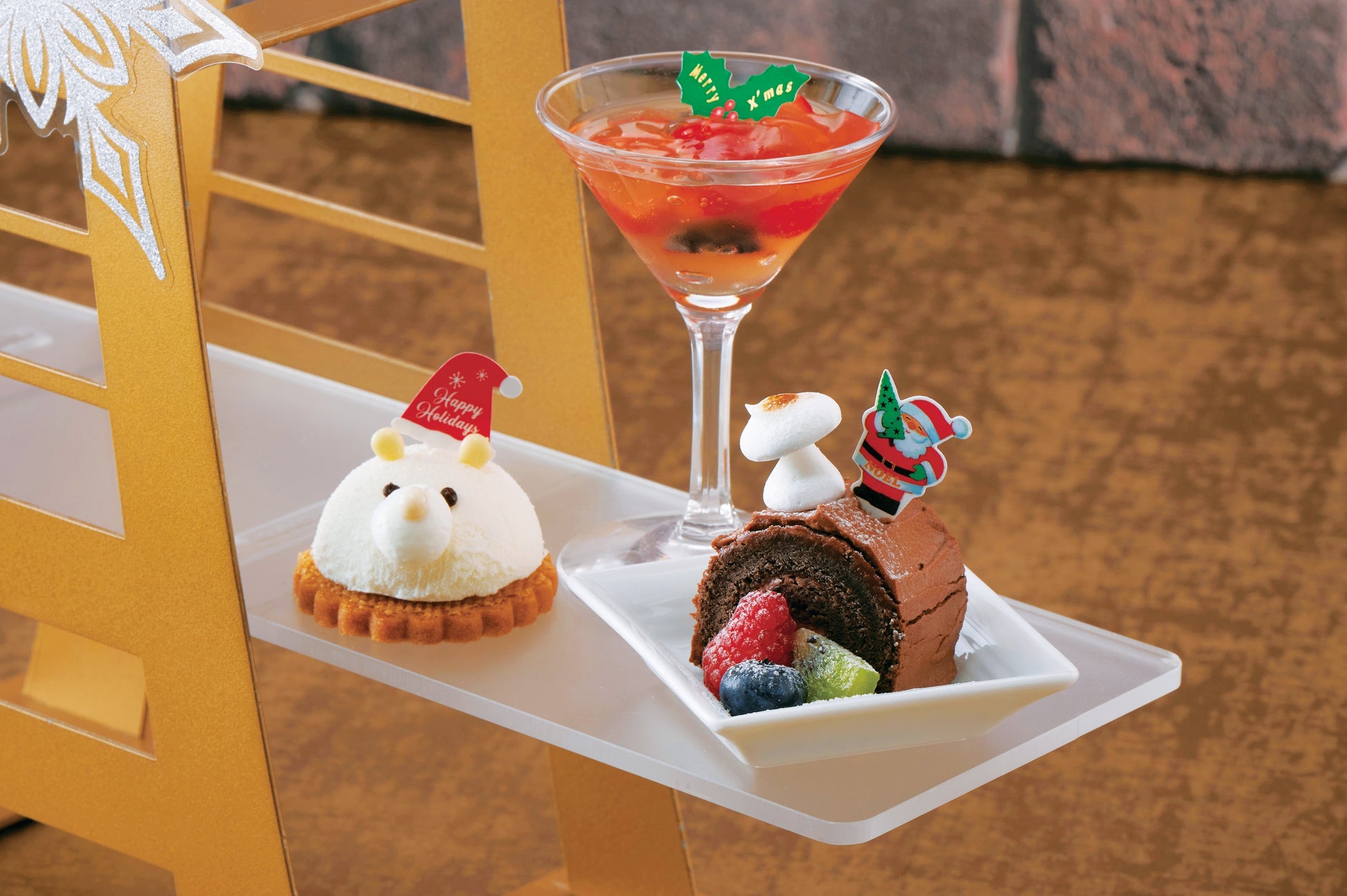 今季のアフタヌーンティーは、まるで絵本から飛び出てきたかのようなクリスマスの世界観を感じさせる可愛らしいスイーツやセイボリーをご用意いたしました。華やかなリボンをあしらったスタンドには、サンタクロースの帽子をかぶったクマのレアチーズケーキや雪だるまマカロンが顔を覗かせます。スノードームのようなツリーを飾ったパフェやクリスマスならではのブッシュドノエル、シュトレンなども味わえる贅沢なラインナップです。クリスマスの雰囲気に浸りながら、ロビーラウンジでゆったりと優雅なひとときをお楽しみください。