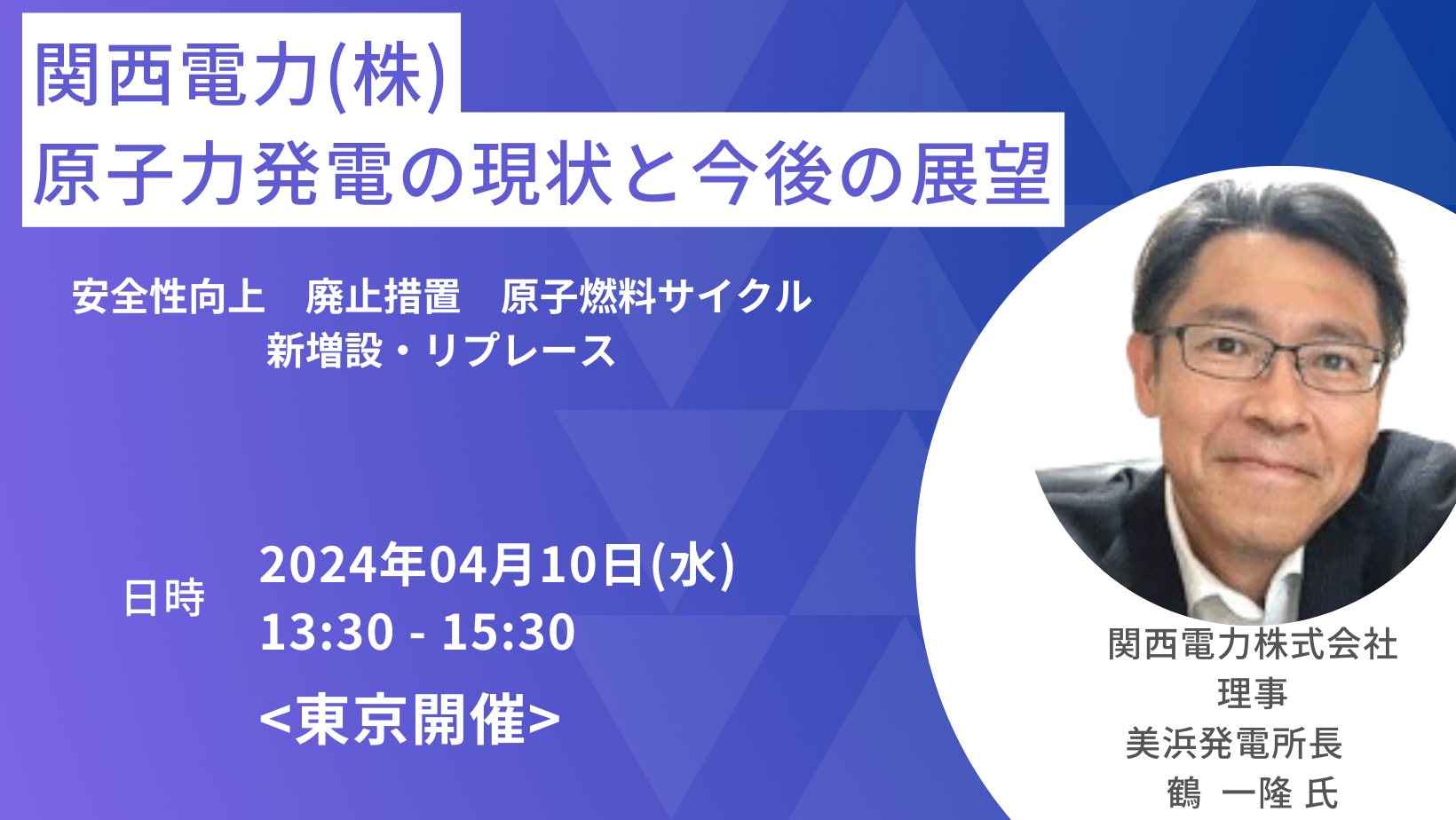 【JPIセミナー】関西電力(株)「原子力発電の現状と今後の展望」4月10日(水)<東京開催>