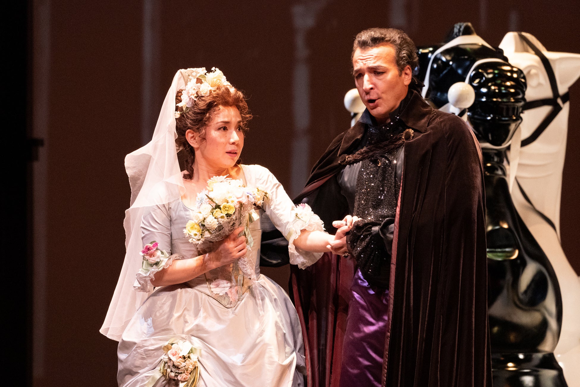 タクトをとったのはイタリア・オペラで名高いパオロ・オルミ。世界を魅了するイタリアのスター歌手シモーネ・アルベルギーニが題名役のドン・ジョヴァンニを務め、エレガントな色気の漂うパフォーマンスで会場を沸かせました。加えて、ミルト・パパタナシュ、セレーナ・マルフィ、レナート・ドルチーニ、レオナルド・コルテッラッツィら世界の主要歌劇場で活躍する歌手たちが、河野鉄平、近藤 圭、石橋栄実ら日本人キャストとともに美しい声の饗宴を繰り広げました。