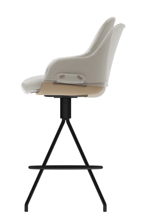 バリエーションも豊富に揃い、背座はクッションタイプと樹脂タイプの2種類から、カラーは張地11色、背座3色、脚3色からお選びいただけるので、合計396通りの組み合わせから空間に合わせてお好きな「Liite」のハイタイプとミドルハイタイプをカスタマイズできます。