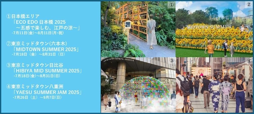 三井不動産株式会社(本社:東京都中央区 代表取締役社長:植田俊、以下「三井不動産」)は、地域と連携してエリアマネジメントを推進する都内の4つのエリア(日本橋エリア、東京ミッドタウン(六本木)、東京ミッドタウン日比谷、東京ミッドタウン八重洲)の各所にて、”納涼”イベントを開催します。