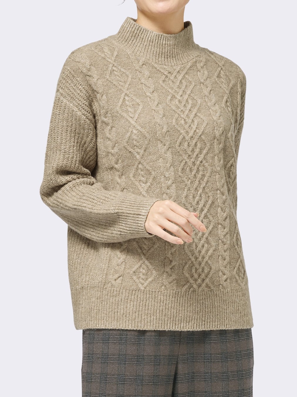 ふんわりとした糸感がやわらかく、軽い着心地のニットです。ケーブル編みがシーズンムードをグッと高め、ぬくもりのある雰囲気に。長すぎない丈感で、合わせるボトムスを選びません。パンツを合わせて落ち着いたカジュアルスタイルに、スカートを合わせてフェミニンなスタイルにも◎。