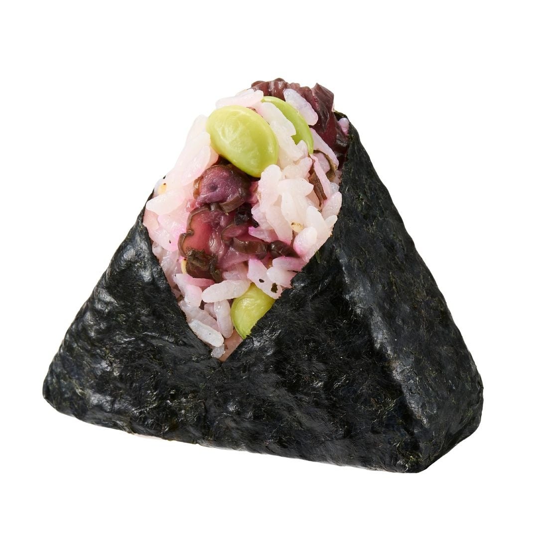 鮮やかな枝豆と、さっぱりとしたしば漬けを混ぜ込んだ夏らしい彩りの混ぜご飯を、風味豊かなおむすびに仕立てました。爽やかな味わいで、食欲が落ちがちな季節にもぴったりの商品です。
