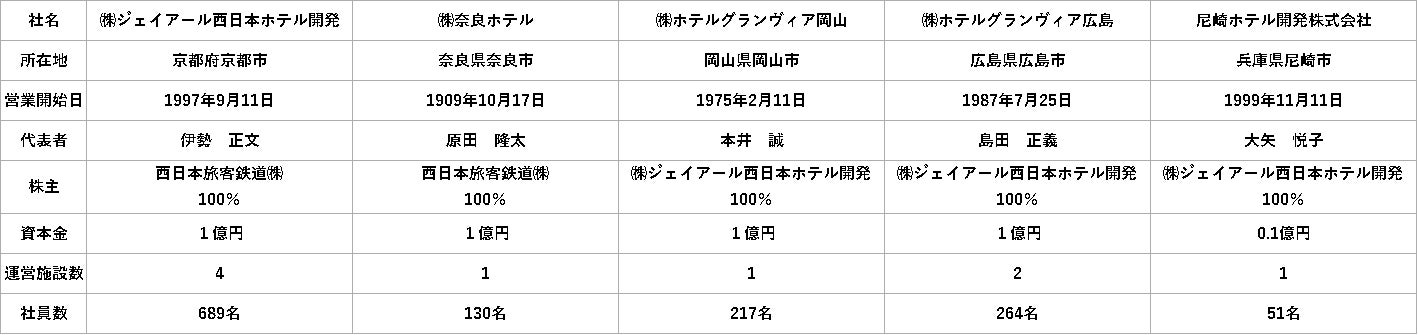 株式会社ジェイアール西日本ホテル開発を存続会社として、株式会社奈良ホテル、株式会社ホテルグランヴィア岡山、株式会社ホテルグランヴィア広島および尼崎ホテル開発株式会社を吸収合併しま す。