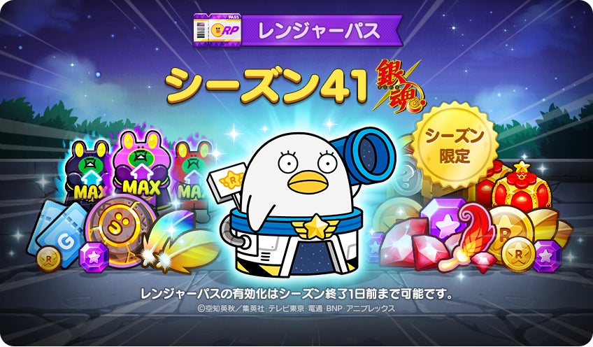 本コラボレーションでは、TVアニメ『銀魂』に登場するキャラクターの「坂田銀時」「志村新八」「神楽」「土方十四郎」「桂小太郎」がコラボ限定のレンジャーとして登場するほか、ここでしか手に入らない限定のLINEスタンプを配信します。さらに、コラボスペシャルステージ「銀魂 惑星」も開催します。
