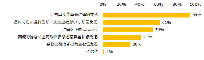 ★ 9割以上が、遅刻・欠勤の際は「いち早く連絡することが重要」と回答。