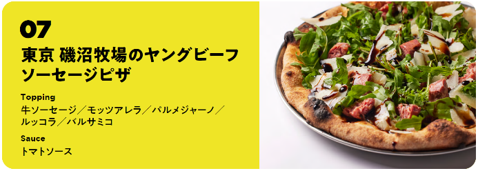 東京磯沼ミルクファームのヤングビーフソーセージピザ タリアータ風