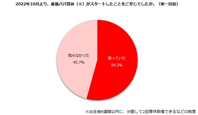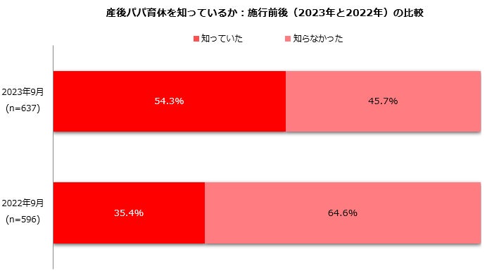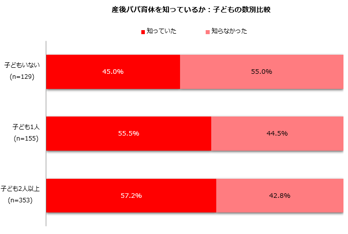 1.産後パパ育休「知っていた」54.3%/子どもの数別・施行前後の比較