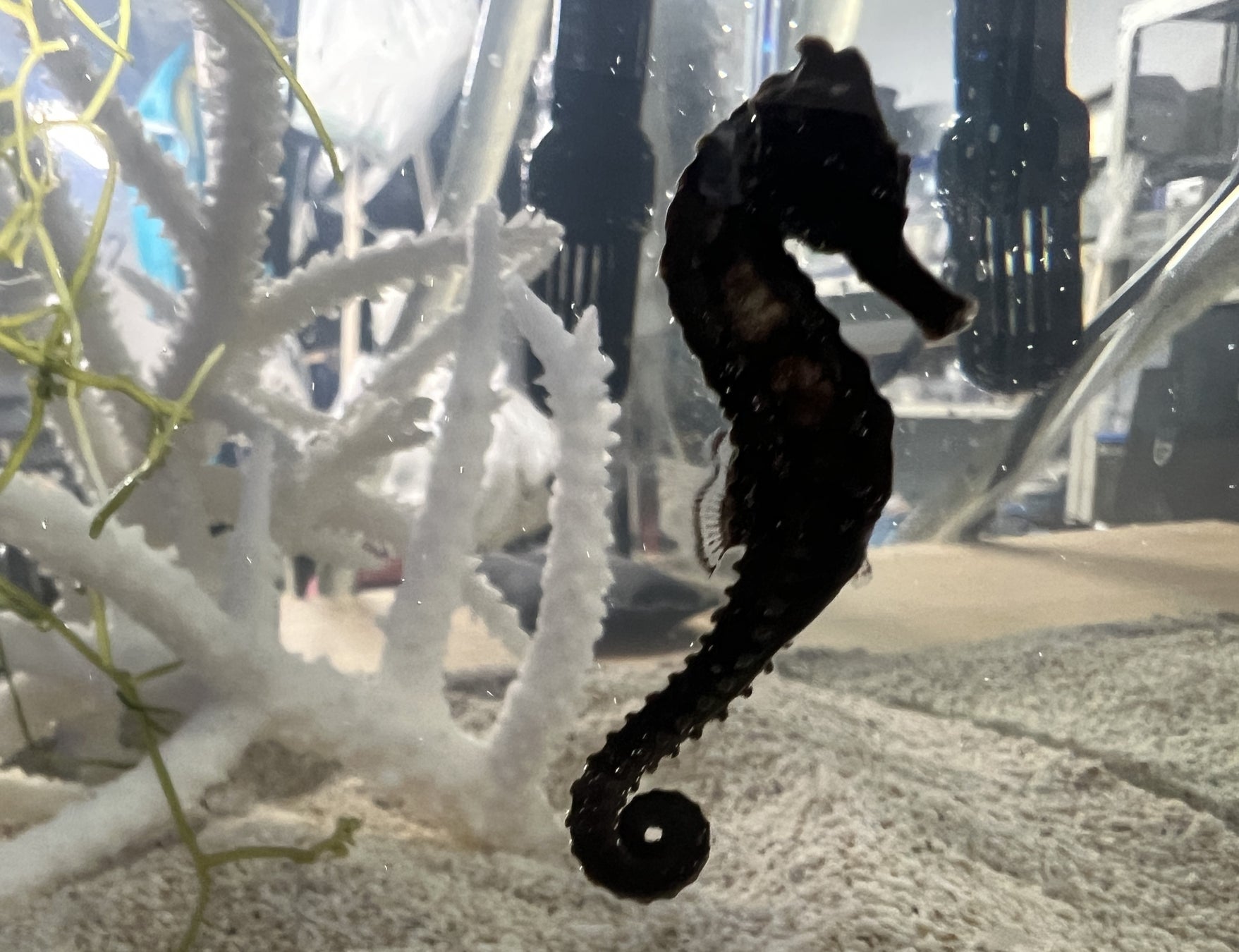 英名で“Spotted seahorse”と呼ばれ、漢字で「黒海馬」と書く「クロウミウマ」と馬のような細長い顔が特徴の「ウマヅラハギ」を展示いたします。