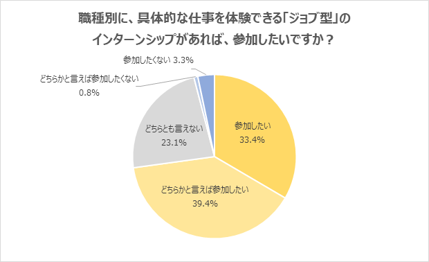 (3) 「ジョブ型」 のインターンシップがあれば参加したいの回答が7割超