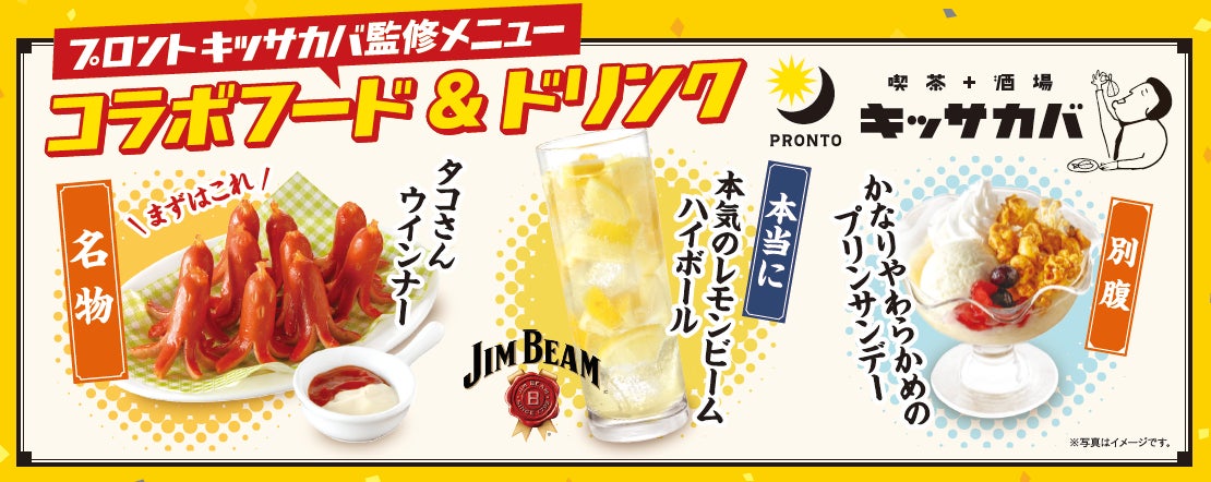 今回、今年35周年を迎えたプロントの「キッサカバ(サカバタイム)」とのコラボレーションが実現しました。「昼はカフェ、夜はサカバ。」という「二面性」を持つプロントは、働く人がいつでも立ち寄れる、使い勝手の良い空間を一日中ご用意しています。キッサカバは、酒場でありながら、喫茶店のような懐かしさやワクワク感のある空間やおつまみ、お酒を提供しています。