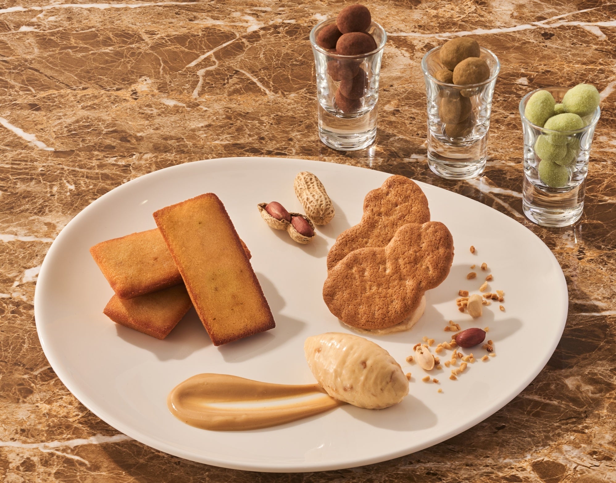 内容:サブレ 5枚、フィナンシェ 4個、ピーナッツペースト 1瓶、ピーナッツクリーム 1瓶、ドレ・ピーナッツボール(ショコラ、ほうじ茶、わさび醬油)各46g×2袋