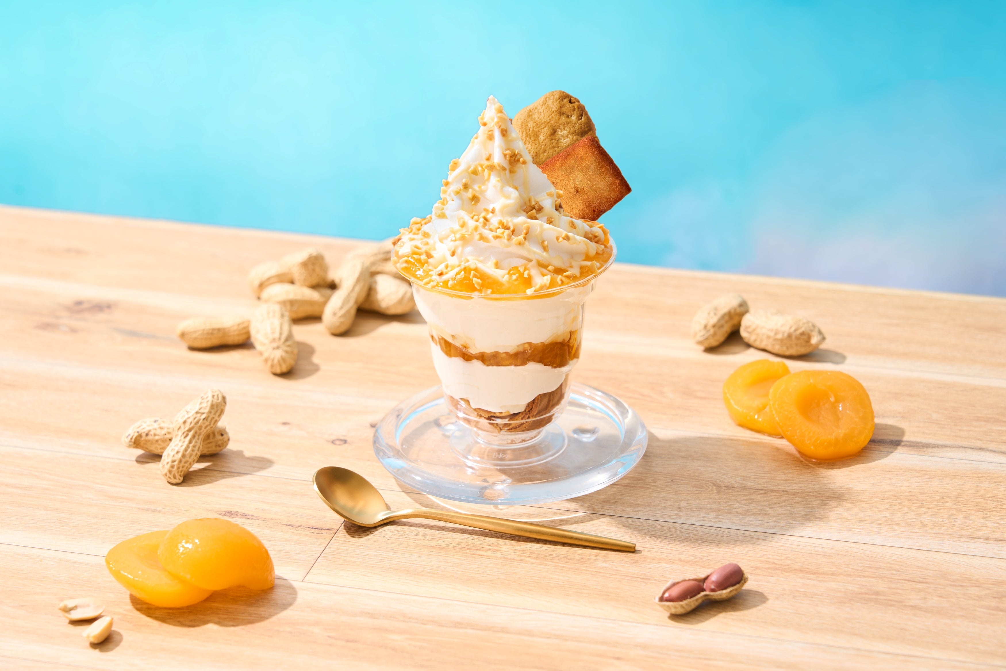 八街産ピーナッツを使用した、果肉入りのあんずソースの爽やかな酸味がミルクソフトクリームにぴったりのサンデー。人気商品の「ドレ・サブレ」「ドレ・フィナンシェ」をトッピングした、あんずと国産ピーナッツが出会ったフルーティでコクのある味わい。