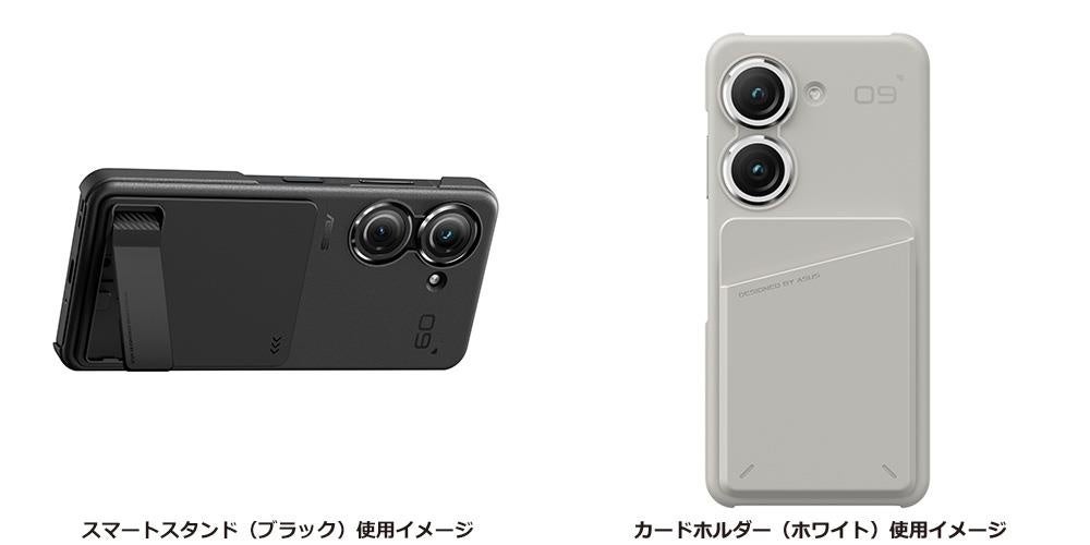 Zenfone 9専用の保護ケースです。ケースの背面にスマートスタンドとカードホルダーを取り付けられるようになっており、本体を傷などから守ることができるだけでなくアクセサリー取り付け用のマウンタの役割も持っています。