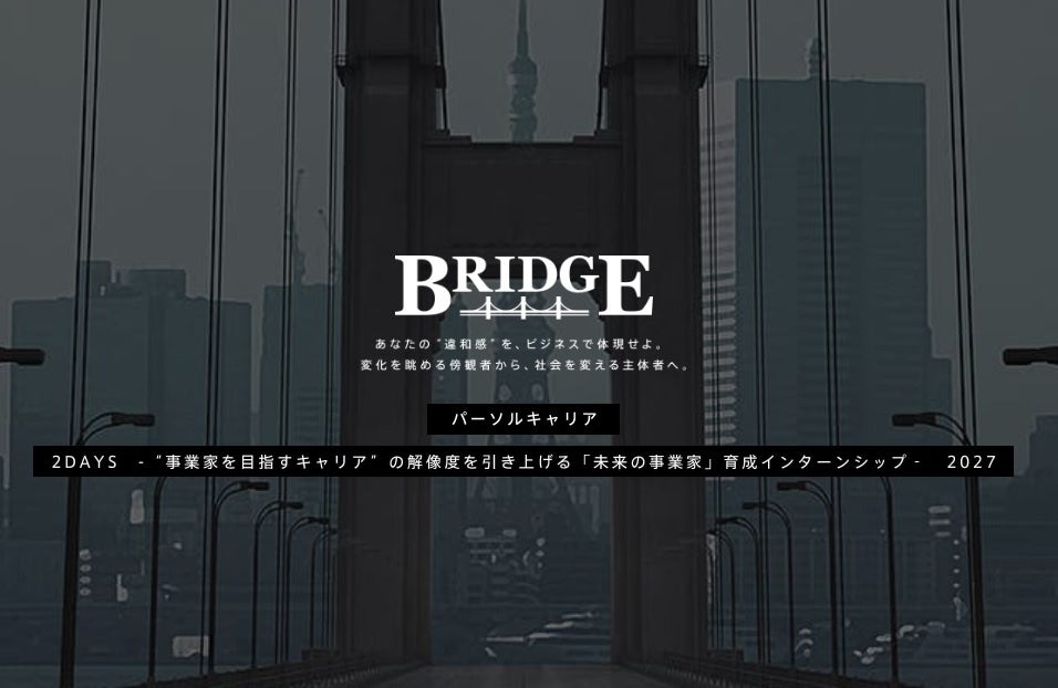 転職サービス「doda」などを運営するパーソルキャリア株式会社(本社:東京都港区、代表取締役社長:瀬野尾 裕)は、“社会を変える事業家”を本気で目指す学生を対象に、2日間のキャリア開発インターンシップ「BRIDGE」を、2025年8月および9月にオンラインで開催いたします。