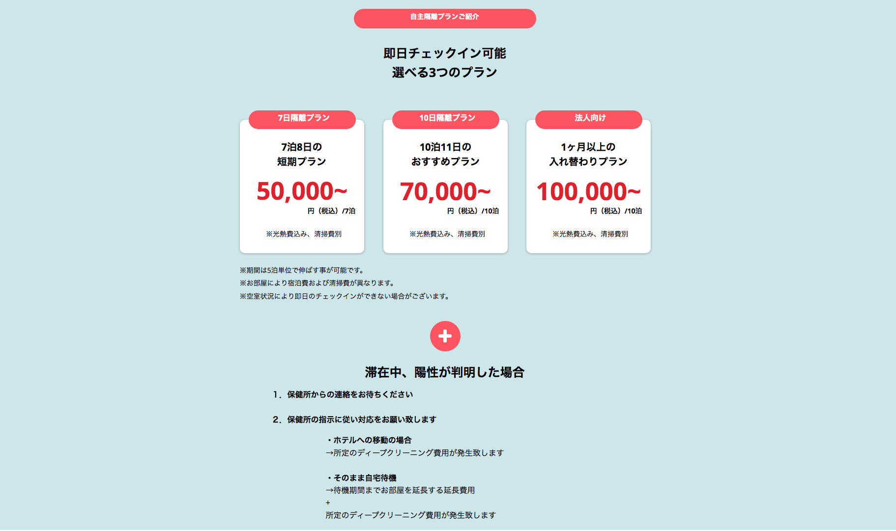 その際、濃厚接触者が10日間以上の宿泊療養し、自主隔離ができる環境をご提供することとなりました。