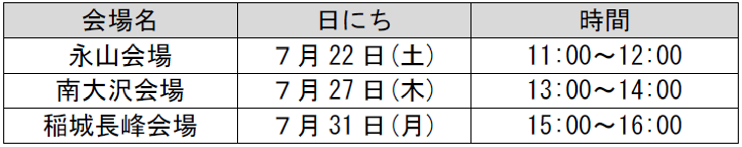 ・各会場1日目と2日目のフレーズ募集期間中、次の日程でプロが来場します。是非、フレーズに込めた思いを直接お伝えください。