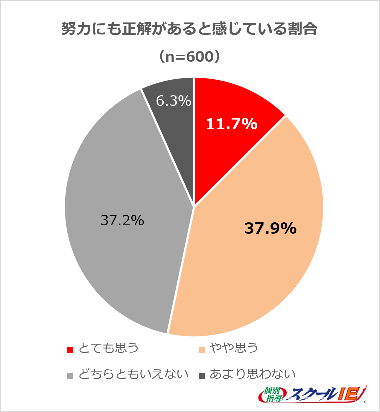 総合教育サービス企業の株式会社やる気スイッチグループ(東京・中央区、代表取締役社長:高橋 直司)が展開する個別指導塾「スクールIE®」は、一人ひとりの個性にあわせた努力の仕方(努力の正解)の実態について明らかにするため、10~50代の男女600名を対象に「努力迷子調査」を実施いたしました。