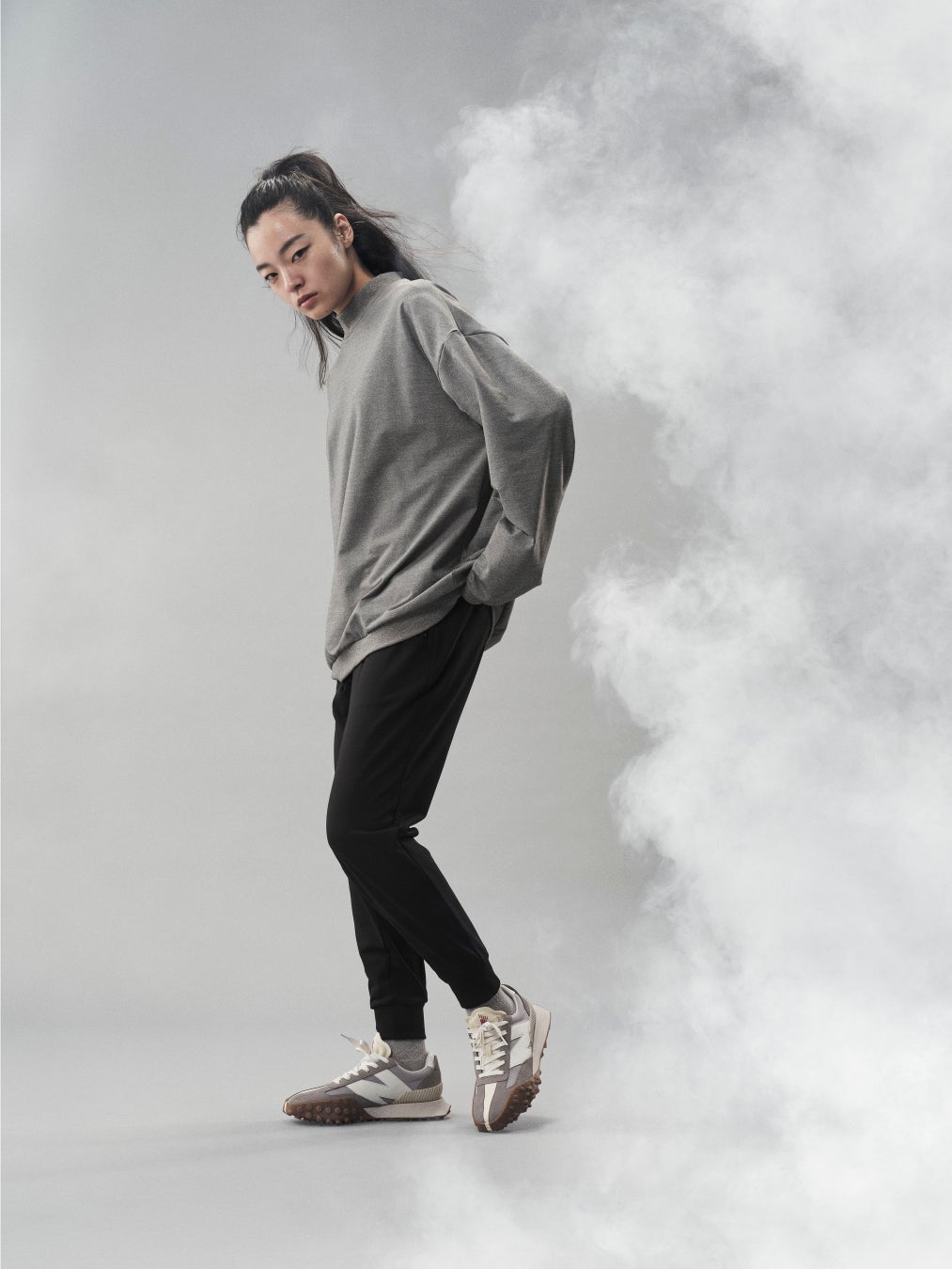 「MET24」は2019年、5つのシルエットのパンツコレクション「WAIST TO TOE(ウェスト トゥ トウ)」として誕生。ニューバランスシューズとのベストバランスとしてシュータンからパンツの裾までの空間を1インチに設定し、日常を快適にする機能素材を採用してニューバランスアパレルを象徴するラインのひとつとして進化してきました。セットアップで着られるジャケットの登場や、2021年にはコレクション名を「MET24」にアップデートし、さらにデニムやウィメンズラインなどバリエーションも充実。この2022年秋からは、都市を生きる人のための機能性とデザイン性をそなえたアパレルコレクションとして、新シーズンがスタートします。