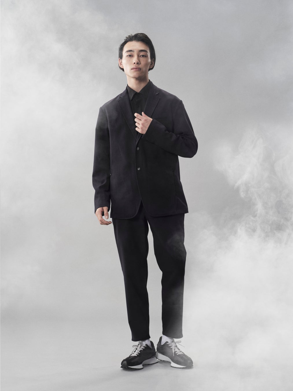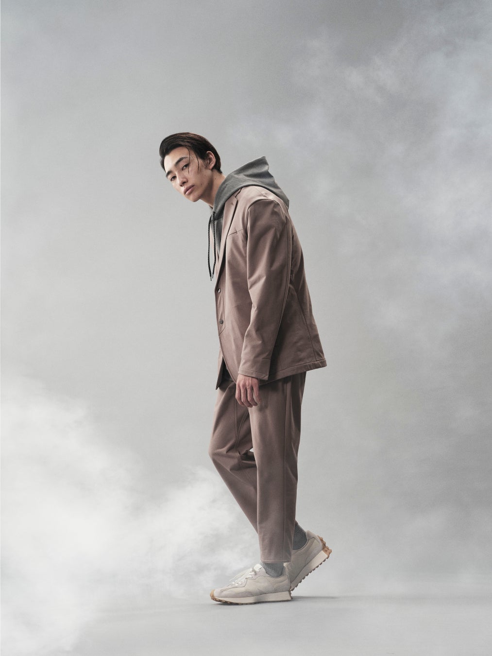 今シーズンのパンツは新素材を採用したスキニー、スリムテーパード、ワイドテーパードの3スタイル。定番のシングルジャケットも合わせてセットアップでコーディネートが可能。スタイリングの幅を広げるモックネック、フーディ、ジョガーパンツもラインナップしています。