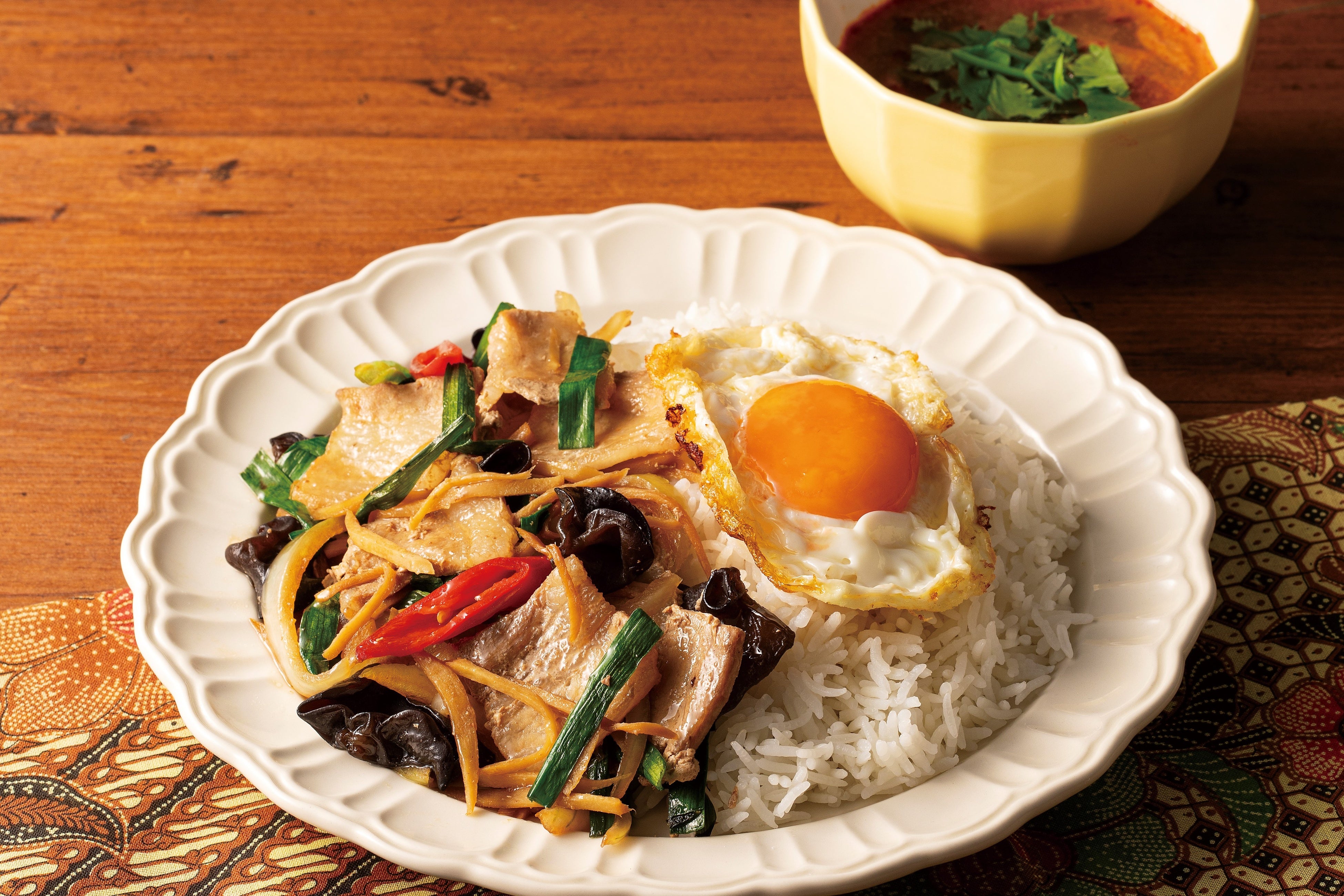 日本でも人気の豚の生姜焼き、タイでは日本のように生姜をすりおろして使うのではなく、厚めに千切りした生姜をたっぷり入れて豚肉と一緒に炒めます。身体の中から温めるとも言われる生姜を使ったタイ料理で、これから寒くなる季節にもぴったりです。