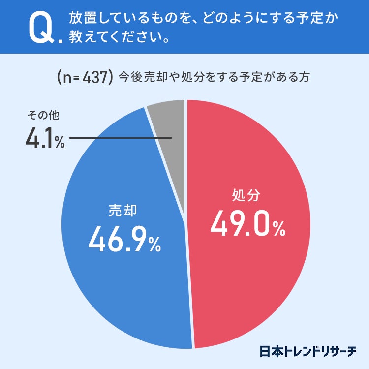 「売却」が46.9%、「処分」が49.0%とほぼ半数に分かれました。
