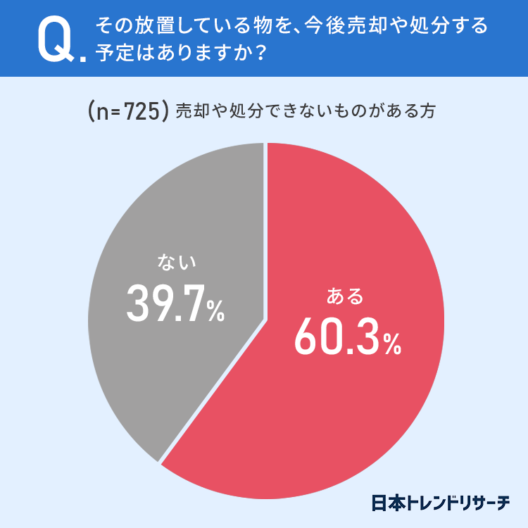 60.3%の方が、放置している物を、今後売却や処分する予定が「ある」と回答しています。